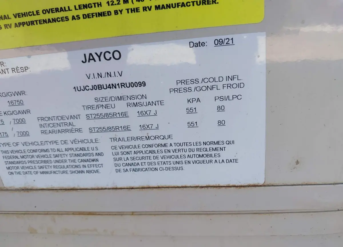 • Vin: 1UJCJ0BU4N1RU0099