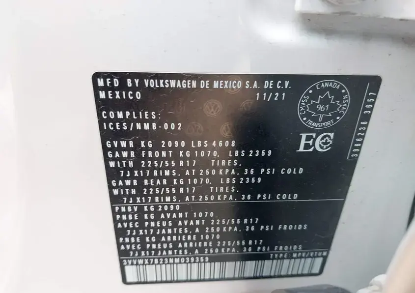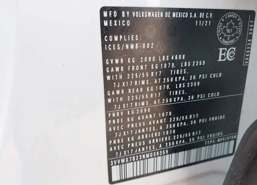 • Vin: 3VVWX7B23NM039359