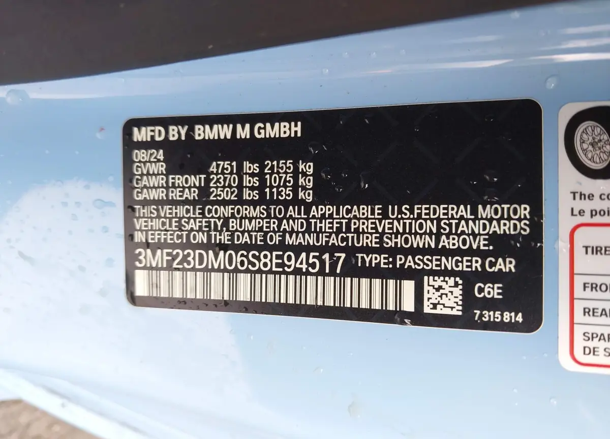 This BMW M2 2025 Blue was originally purchased at one of the major insurance auctions in the United States or Canada. The vehicle history is tied directly to its VIN code, which makes it possible to track the origin, condition, and circumstances of the sale. The photographs provided represent the actual state of the car at the moment of auction and serve as an important visual record of its technical and cosmetic condition.