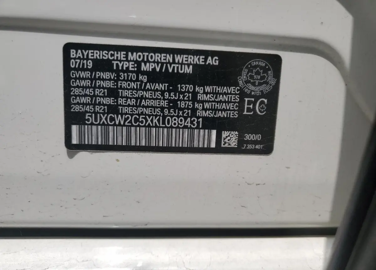 • Vin: 5UXCW2C5XKL089431