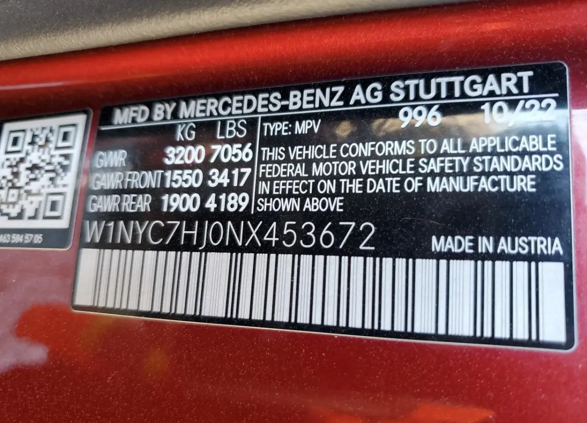 This Mercedes-Benz G-Class 2022 Red was originally purchased at one of the major insurance auctions in the United States or Canada. The vehicle history is tied directly to its VIN code, which makes it possible to track the origin, condition, and circumstances of the sale. The photographs provided represent the actual state of the car at the moment of auction and serve as an important visual record of its technical and cosmetic condition.