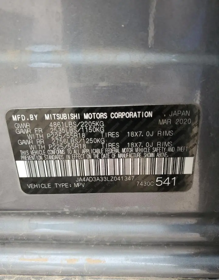 The Mitsubishi Outlander 2020 Silver is equipped with a 2.4l 4 engine. This power unit is known for its efficiency and reliability, and it is part of modern generation of engines designed to balance performance with fuel economy. According to the auction data, the vehicle was registered with only 115233 of mileage at the time of sale.
