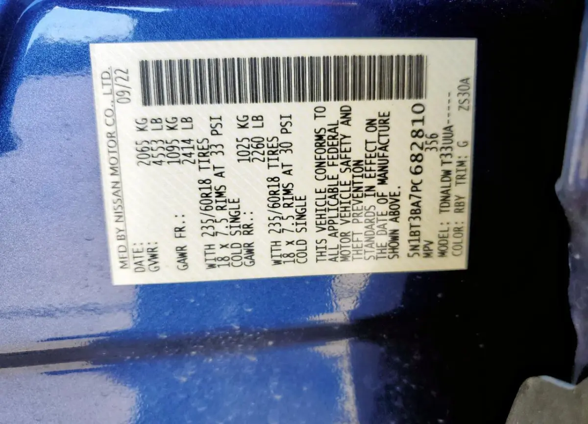 • Vin: 5N1BT3BA7PC682810