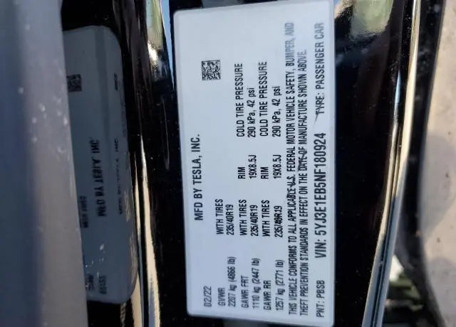 • Vin: 5YJ3E1EB5NF180924
