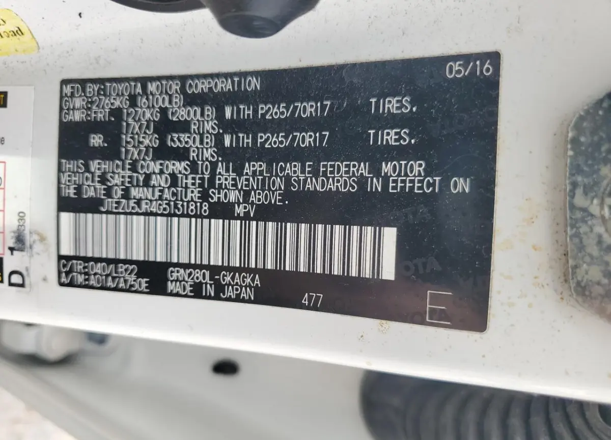 Each lot presented on our website includes comprehensive information tied to the VIN code. This allows users to cross-check vehicle data, verify the history of ownership, and confirm accident or insurance records. The Toyota 4Runner 2016 White corresponds to a car that was listed through one of the large insurance auctions in USA, which guarantees traceability and transparency of the information.