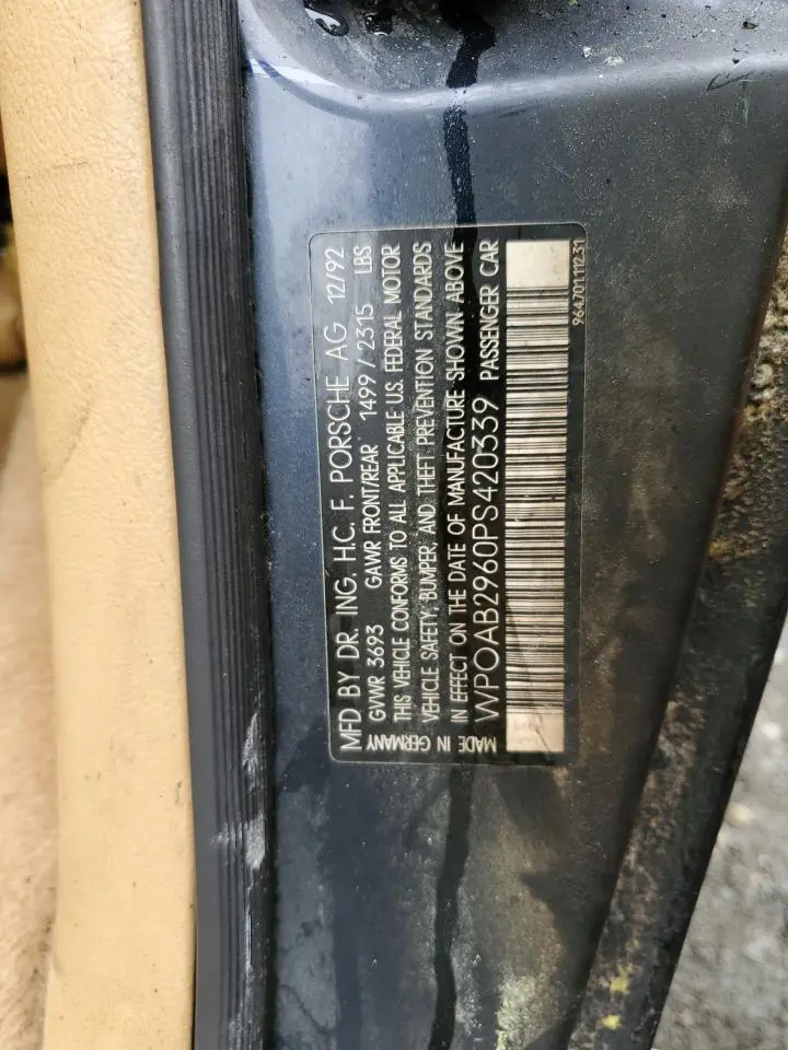WP0AB2960PS420339 PORSCHE 911 1993